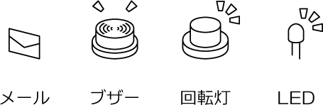 機械の加工停止を離れた場所に通知できます。ライトやブザーなど物理的な手段による通知も可能です。NC工作機械やマシニングセンタなど、長時間自動加工する機械の並行作業に最適です。